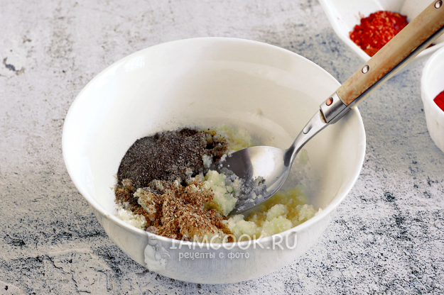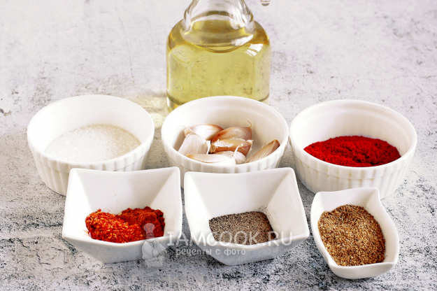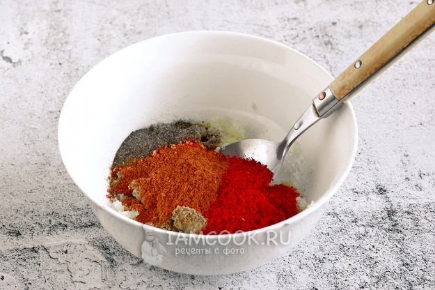 ...два вида красного острого перца (можно взять один) и паприку. Перемешайте полученную смесь.