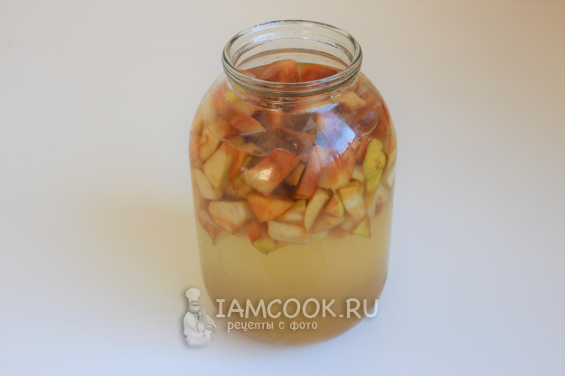 Заливаем айву водкой (самогоном), добавляем очищенную воду. Вода разбавит крепость ликера, поэтому воды можно добавить меньше, но не больше.