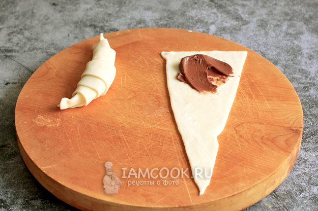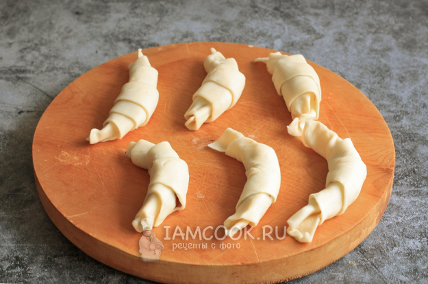 Из обрезков теста я сделала рогалики, нарезав тесто на треугольники.
