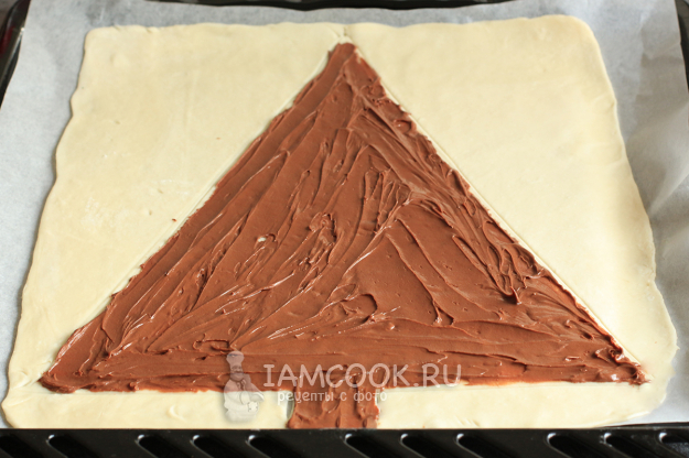 Смажьте намеченный треугольник шоколадной пастой, не выходя за края наметки.