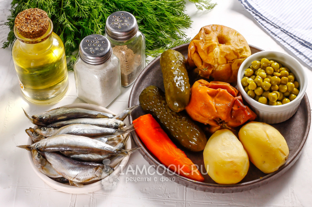 Подготовьте необходимые ингредиенты для создания сочного и вкусного постного салата Оливье с килькой пряного посола на Новый год. Отварите картофель и морковь примерно 30 минут, а яблоки кисло-сладких или кислых сортов запеките в духовке. Затем эти продукты остудите, корнеплоды очистите от кожуры и промойте.