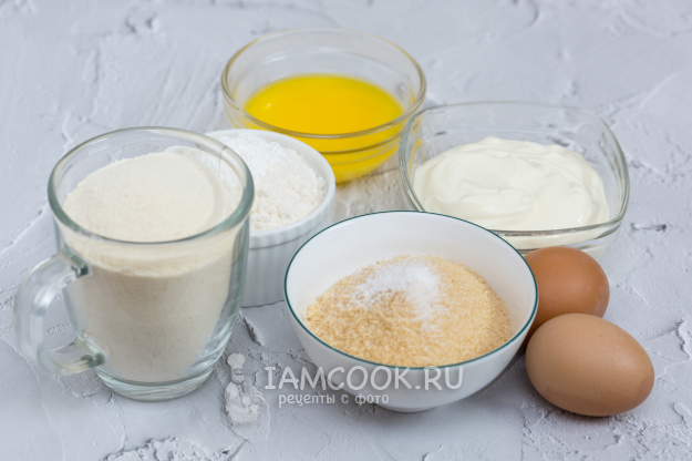 Для приготовления классического манника на сметане подготовьте продукты по списку.