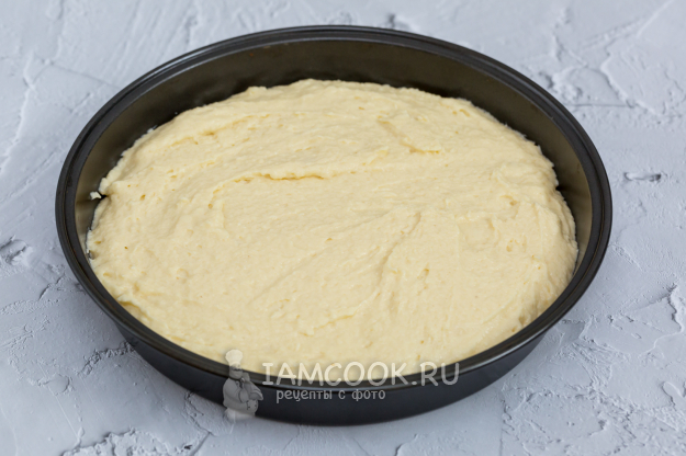Тесто выложите в форму, дно которой застелено пергаментом.