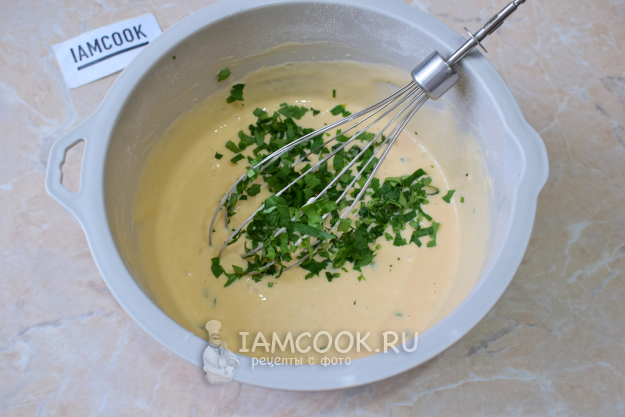 В готовый кляр добавьте измельченную свежую зелень.