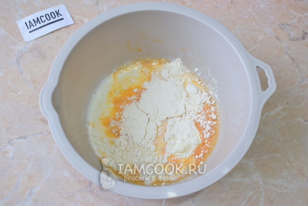 Для приготовления кляра смешайте яйца с сахаром и солью.