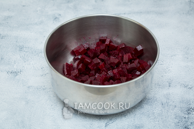 Свеклу необходимо заранее отварить или запечь. Я предпочитаю второй вариант, потому как удобнее. Заворачиваю свеклу в фольгу и запекаю при 190 градусах до готовности. Готовность, как вы понимаете, определить просто: проткните ее вилкой или остроконечным ножом, входит легко - готово. На время тут ориентироваться неправильно, потому как свекла бывает разная сама по себе, плюс ее размер: чем больше овощ, тем дольше будет запекаться. Если планируете хранить свеклу, то остудите ее полностью, не вынимая из фольги, и уберите в холодильник. В таком виде она может храниться неделю точно, что очень удобно.