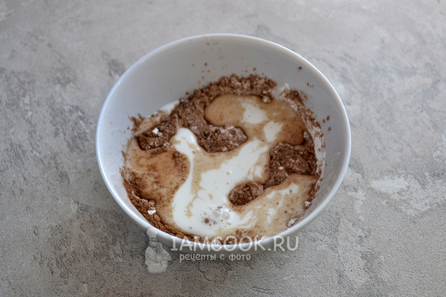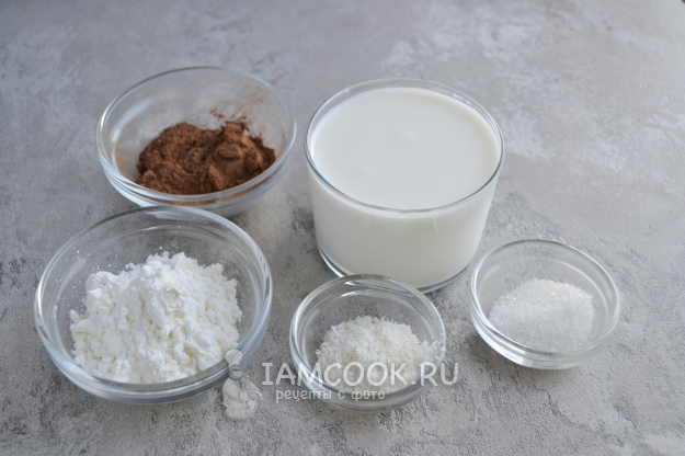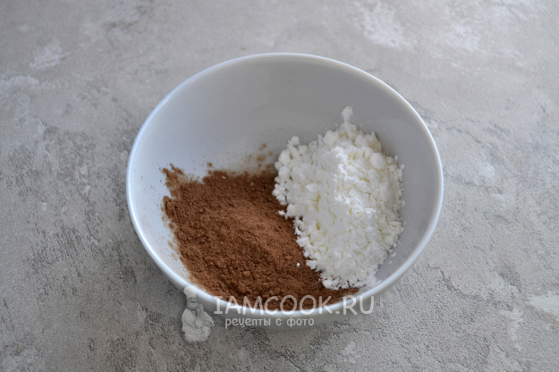 Смешайте с мисочке кукурузный крахмал и какао-порошок.