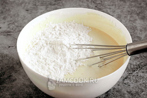 Добавьте ванильный экстракт и размешайте ручным венчиком. Далее добавьте крахмал и снова размешайте венчиком. Миксер больше не используем для бисквита.