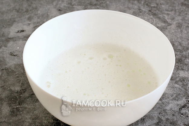 Яйца разделите на белки и желтки, стараясь, чтобы ни капли желтка не попало в белки. Если у вас мощный миксер, то можно этого не делать, а взбивать яйца целиком. В белки добавьте щепотку соли и взбейте до воздушной пены. На дне еще остается невзбитый белок.