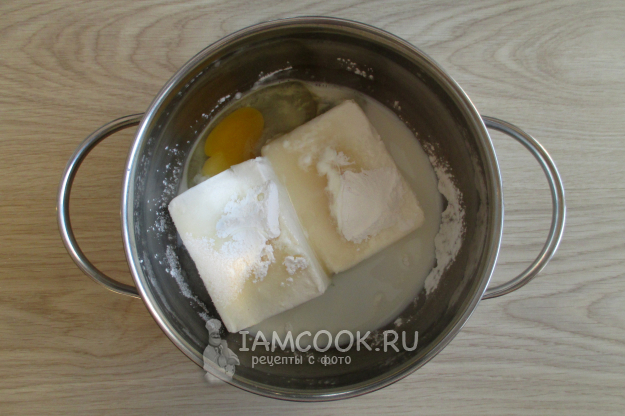 Для начинки соедините творог (тут 7% жирности), яйца, сахар, молоко и кукурузный крахмал. Количество молока зависит от влажности творога, т.е. в более сухой молока нужно побольше.