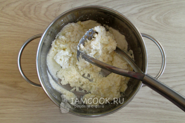 Перемешайте ингредиенты до однородного состояния при помощи толкушки, блендера или просто вилкой вручную.