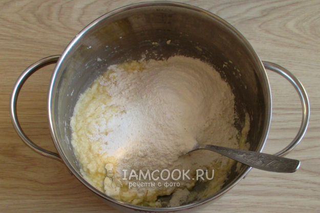 Перемешайте ингредиенты между собой до состояния мягкой крошки. Влейте молоко и соберите тесто в комок.