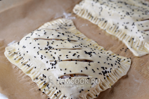 Смажьте поверхность теста взбитым яйцом, посыпьте кунжутом при наличии и отправьте в предварительно разогретую до 190 градусов духовку на 25-30 минут в режиме верхнего и нижнего нагрева...