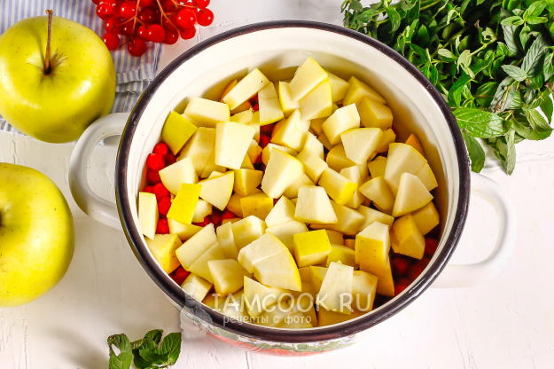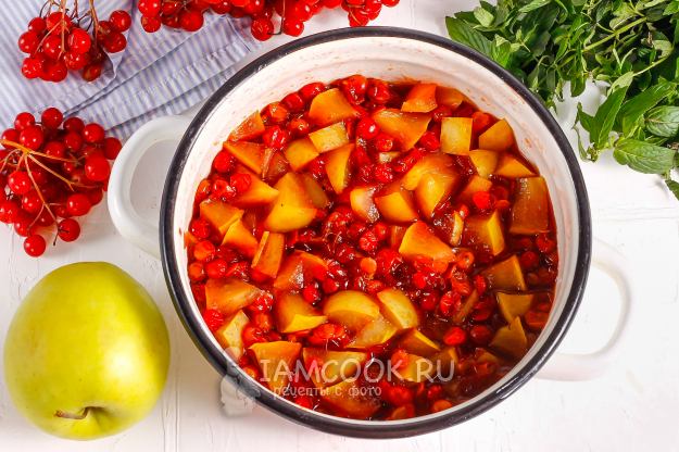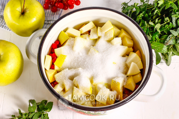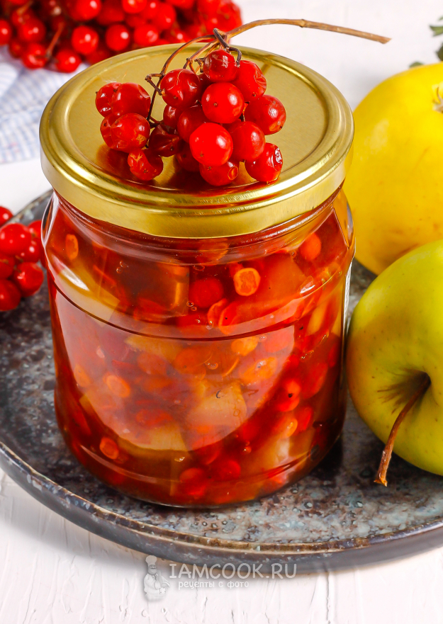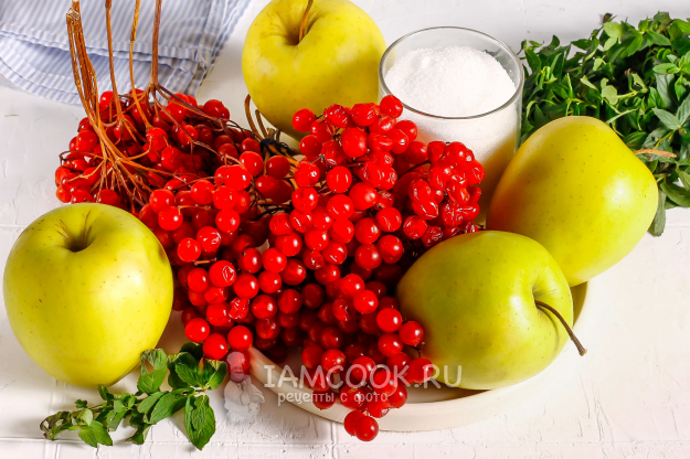 Подготовьте необходимые ингредиенты для создания красочного варенья из яблок с калиной на зиму.