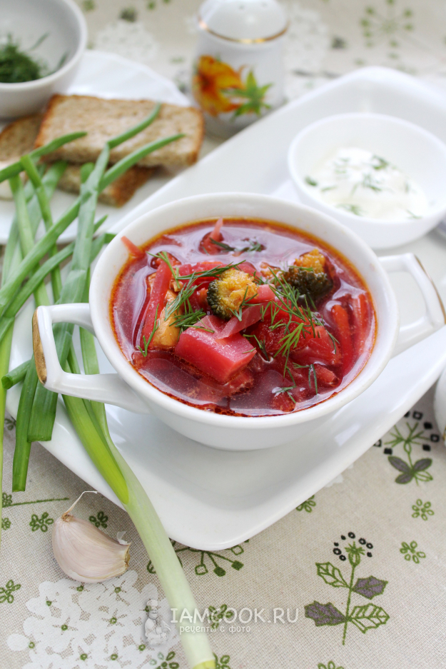 Возьмем необходимые продукты и приступим к приготовлению борща с брокколи.