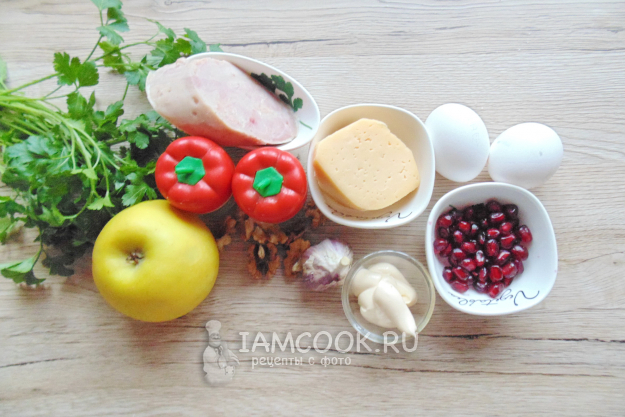 Возьмите все ингредиенты для приготовления салата «Новогодний шар».