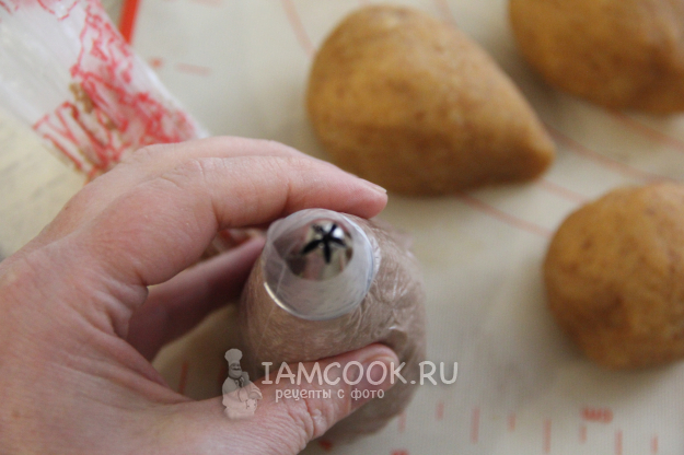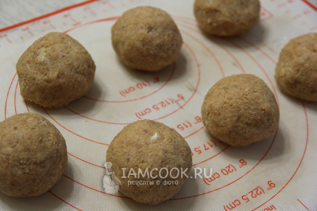 Из массы сформировать шарики. У меня получилось 7 пирожных по 82 грамма.