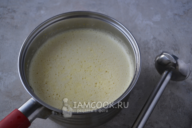 Погружным блендером пюрируйте суп до однородной консистенции.