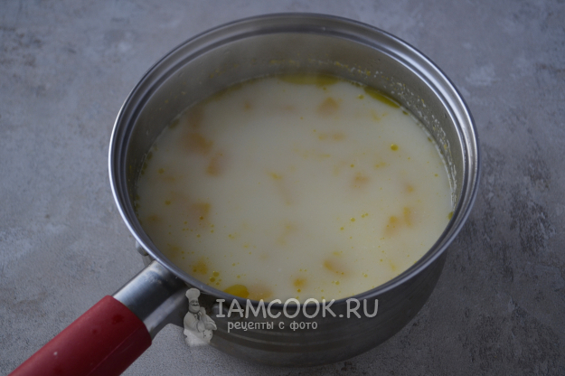 Когда бульон с овощами закипит, отправьте в сотейник нарезанный сыр.