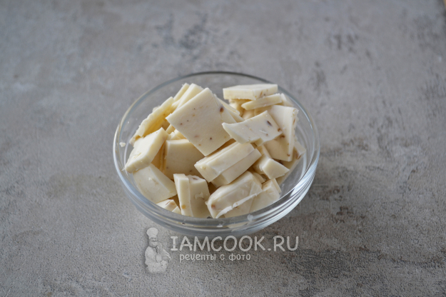 Для приготовления диетического сырного супа-пюре с тыквой можно использовать не только свежую, но и замороженную тыкву. Дайте тыкве немного оттаять, чтобы её можно было нарезать или натереть на крупной терке.