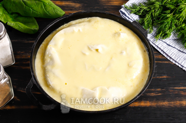 Разогрейте духовку до 180 градусов. Взбейте куриные яйца с кефиром и солью, вылейте заливку на рулеты и распределите по ним с помощью силиконовой кисточки. Поместите форму в духовку.