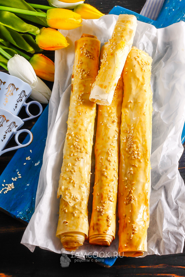 Подайте румяные роллини из теста фило с творогом к столу теплыми, не забывая про ароматный кофе или чай!