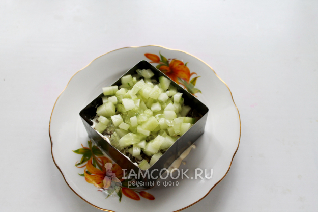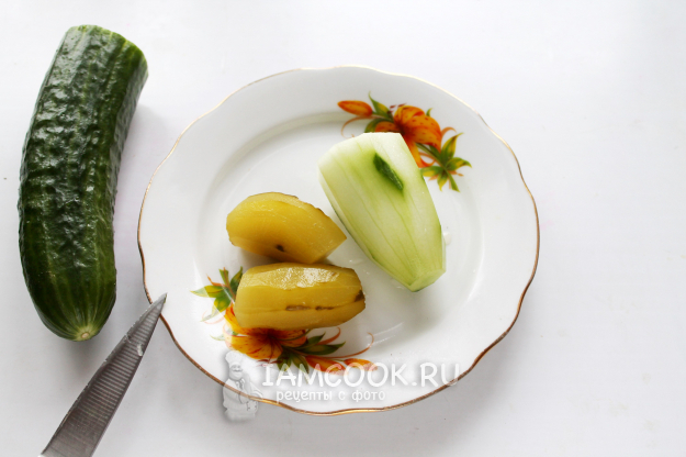 А потом нарезать огурчики одинаковым мелким кубиком, промокнуть бумажным полотенцем сок.