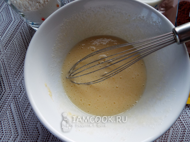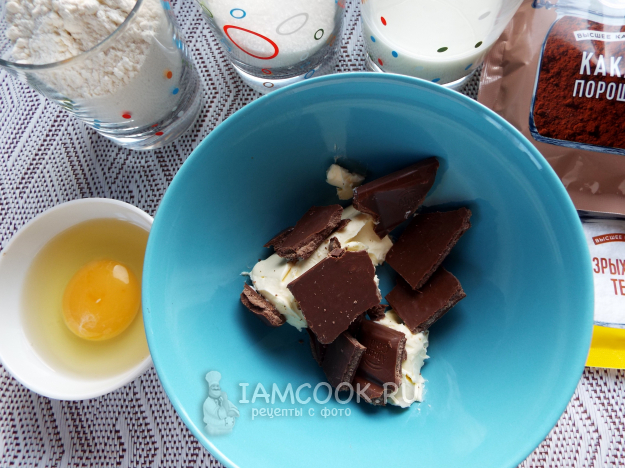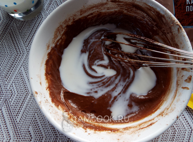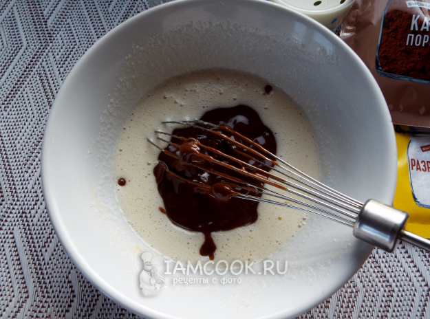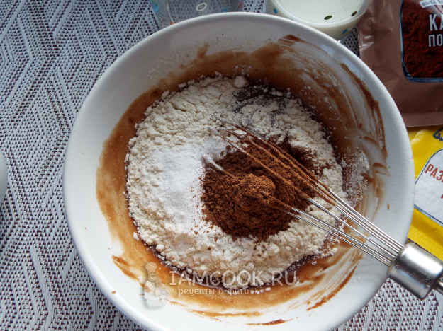 Перемешать. Всыпать муку, какао и разрыхлитель.