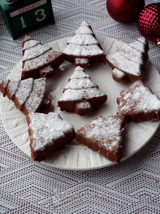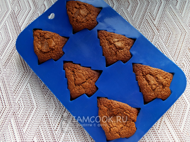 Шоколадные кексы «Ёлочки» со вкусом капучино готовы. Посыпать их "снегом" (сахарной пудрой).