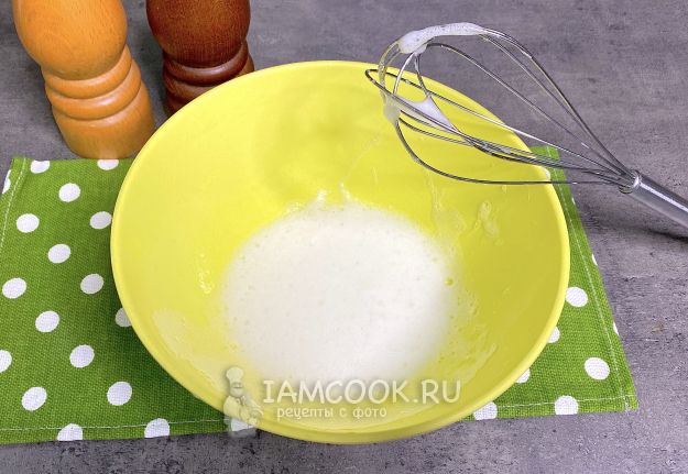 Белки взбейте венчиком в пышную пену.