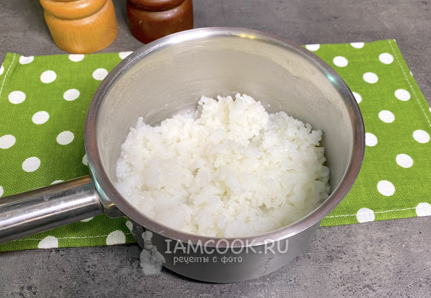 Для начала сварите рис в подсоленной воде до готовности и остудите.