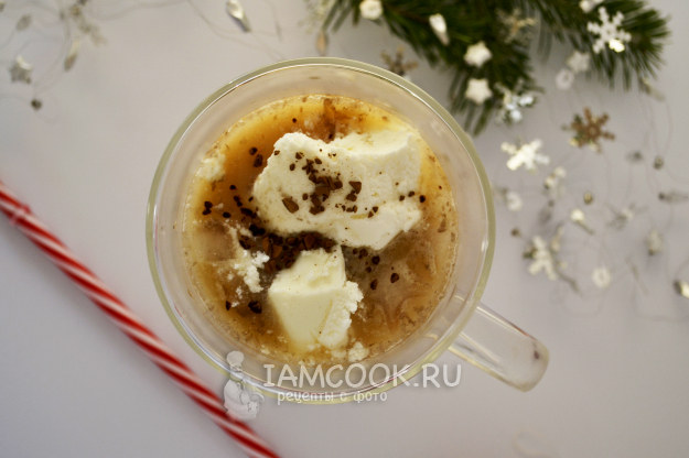 Положите в стакан мороженое или взбитые сливки, украсьте по вкусу. Можно посыпать щепоткой быстрорастворимого кофе, тертым шоколадом, корицей.