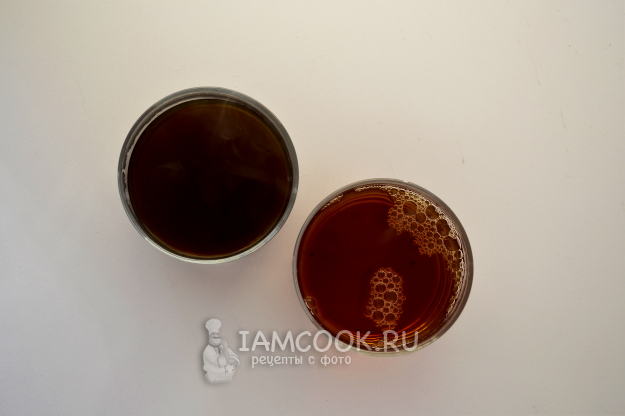 Влейте в стакан чай и кофе.