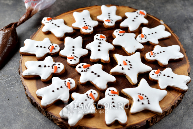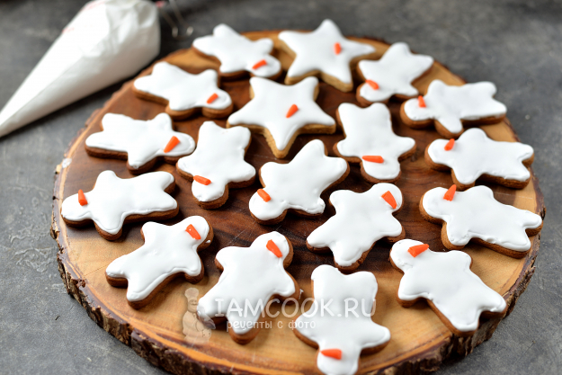 Переложите глазурь в кондитерский мешок, покройте ею пряники, приклейте конфету в виде морковки. Если конфет под рукой нет, можно часть глазури покрасить в оранжевый цвет и ею рисовать морковные носики.