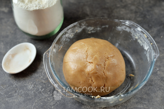 Замесите тесто, оно должно получиться мягким и эластичным, не клеящимся к рукам. Замотайте тесто в пищевую пленку, отправьте в холодильник минут на 20.