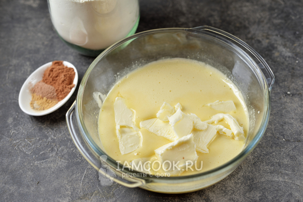 Добавьте масло, продолжайте взбивать, чтобы масло растопилось.