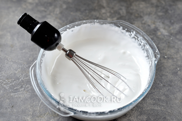 Взбейте все миксером на средних оборотах до гладкой однородной глянцевой массы.