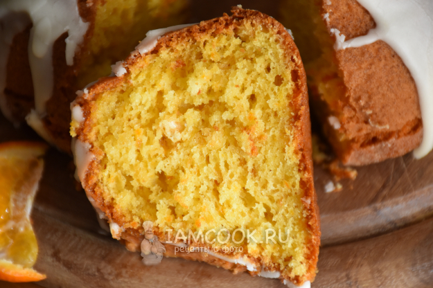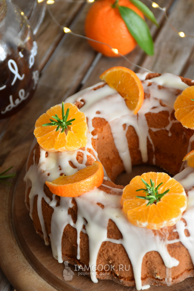 Для приготовления глазури просеять сахарную пудру в миску. Постепенно ввести сок мандарина, каждый раз тщательно растирая массу до нужной вам консистенции. Полить кекс глазурью.