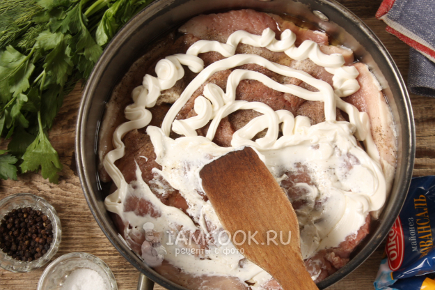 Добавьте вторую половину майонеза. Также равномерно по всему периметру.