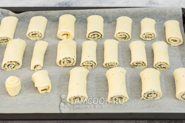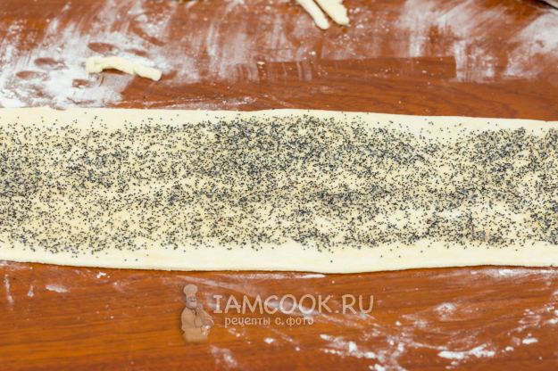 Присыпьте маком, смешанным с сахаром, слегка вдавив их в тесто.