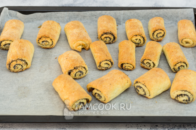 Выпекайте творожное печенье с маком в разогретой до 180 градусов духовке 30-40 минут.