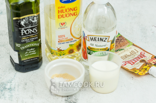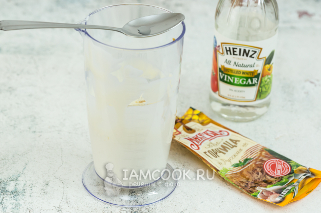 Для приготовления домашнего майонеза на молоке без яиц блендером подготовьте продукты по списку.