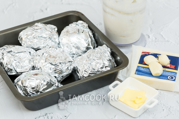 Для запекания картошки с сыром и чесноком в духовке подготовьте продукты по списку.
