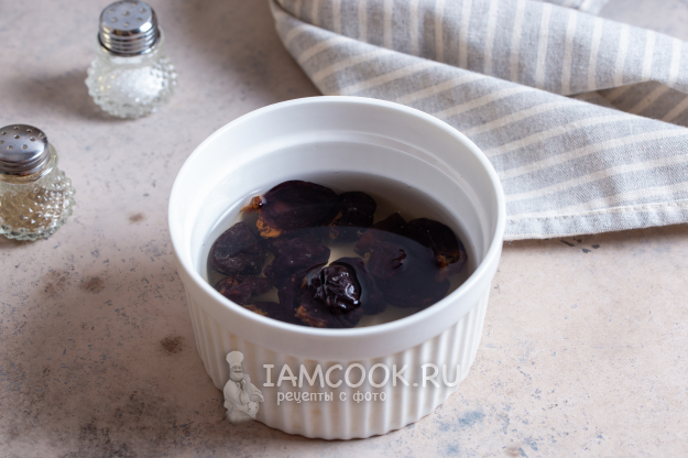 С чернослива слейте жидкость и обсушите бумажными полотенцами. Мелко нарежьте и выложите следующим слоем в салат.