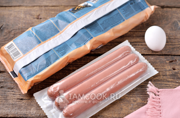 Подготовьте все продукты для мини-слоек «Кнопочки» с сосиской. Тесто заранее разморозьте.