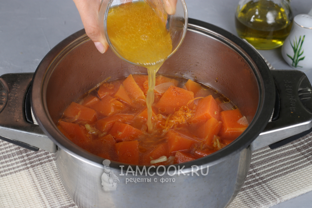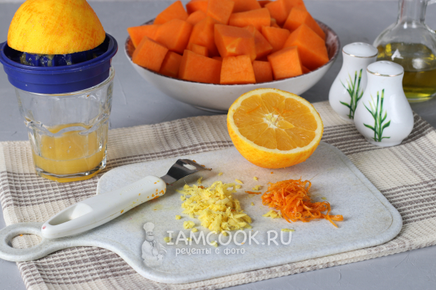 Для приготовления тыквенного супа-пюре с апельсином возьмите из списка необходимые ингредиенты.