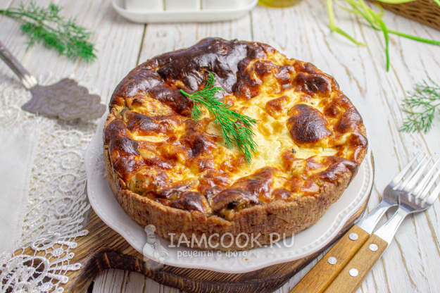 Поверх залейте начинкой. Поставьте выпекаться в заранее разогретую до 180 градусов духовку на 30-40 минут. Ориентируйтесь на свою духовку.