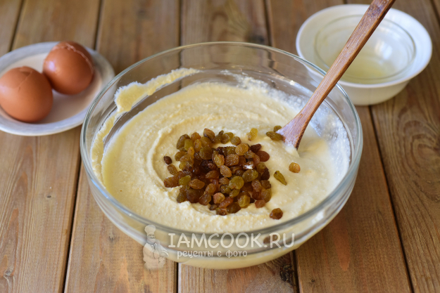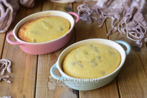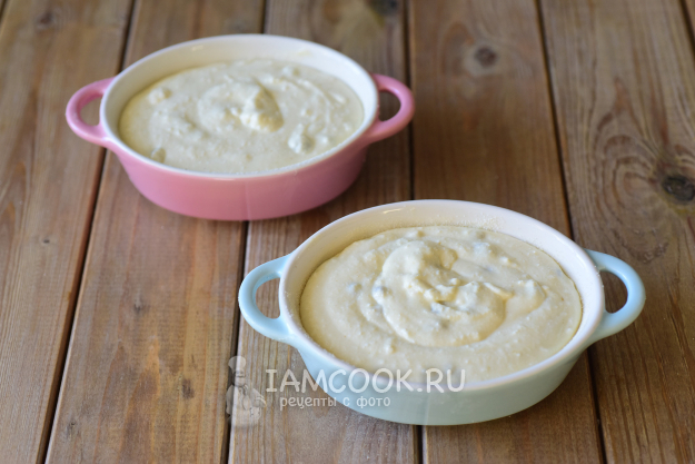 У меня две керамические формы объемом 450 мл, которые я внутри смазала тонким слоем сливочного масла и обсыпала манкой. Выложим творожную массу в подготовленную форму или формы.