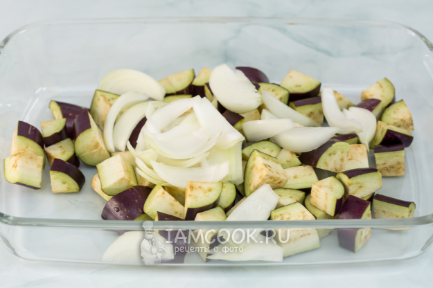 Баклажаны нарежьте довольно крупными кусочками (брусочками, четвертинками, кружочками).