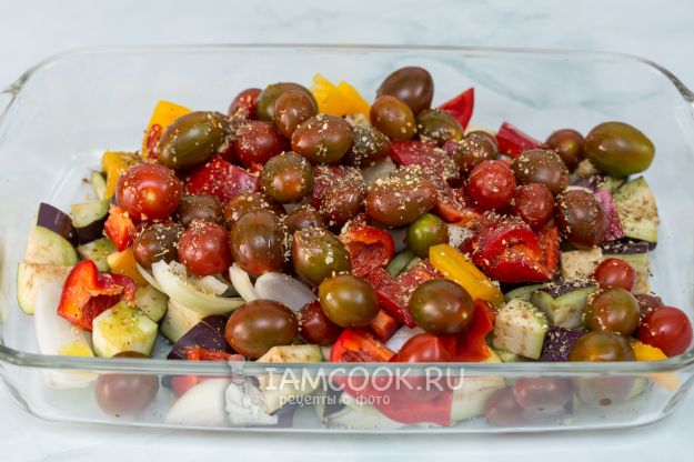 Запекайте овощи в разогретой до 200 градусов духовке 30-40 минут.